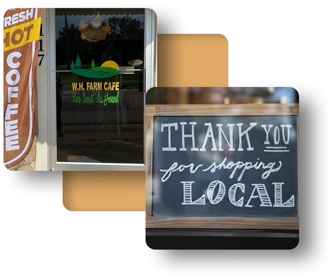 We opened WH Farm Cafe in March 2021. We started in a tiny building behind Casey’s in Diamond, MO. As the community showed us love, we expanded to Granby Main Street in January 2023, and eventually into our current home in August 2024.