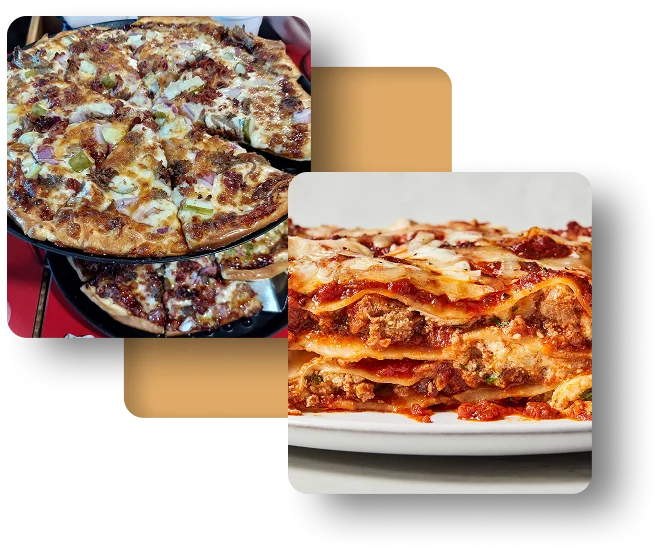 including specialty pizzas, build-your-own, pastas, starters, desserts, drinks, and our full catering menu for events big and small.